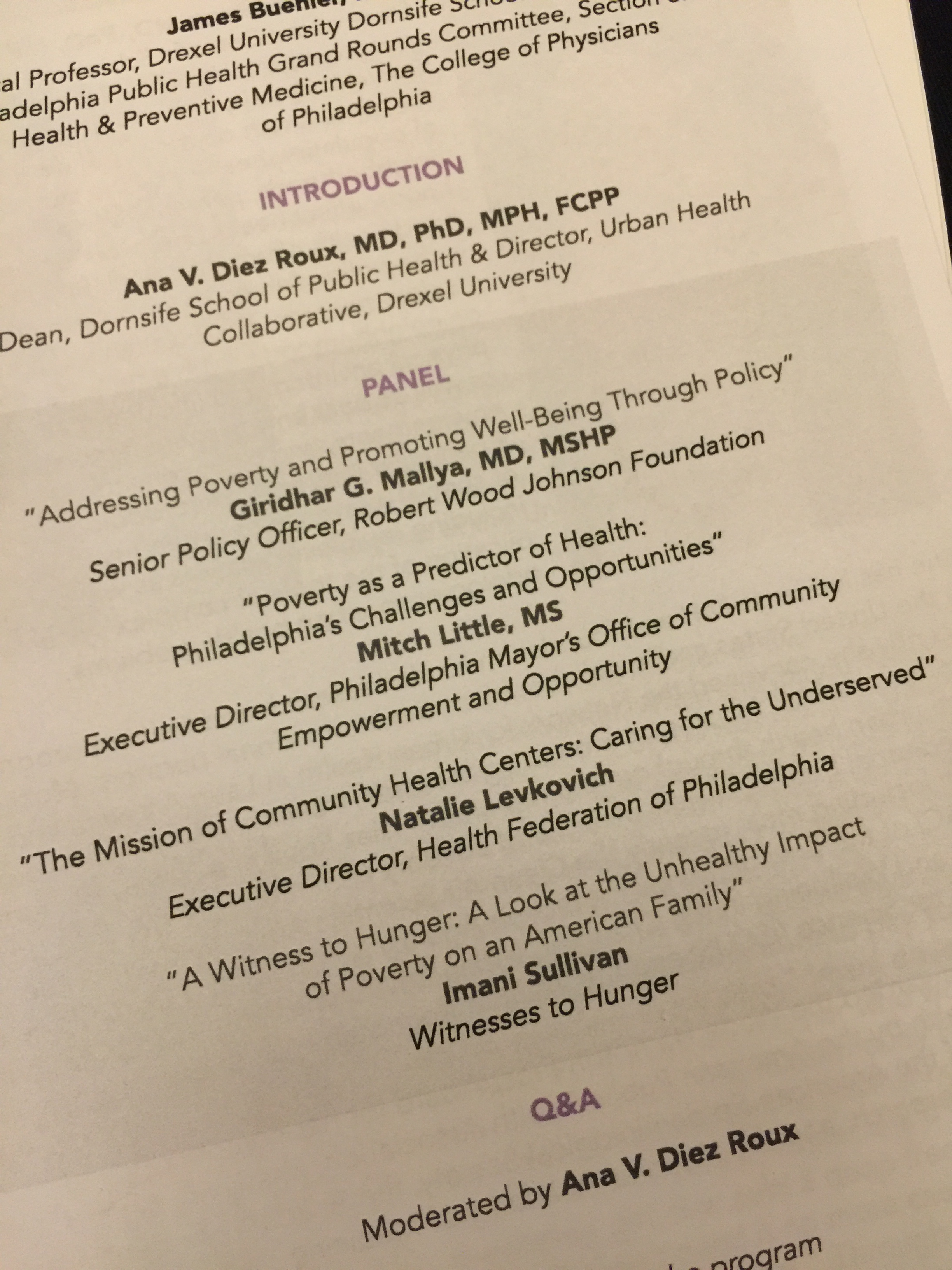 Imani S. Presents at #PhillyGrandRounds “A Witness to Hunger: A Look at the Unhealthy Impact of Poverty on an American Family”